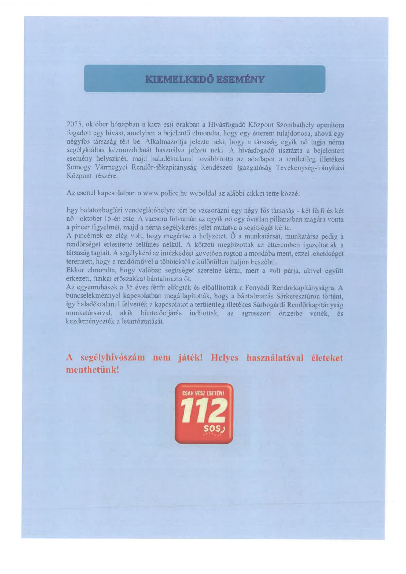 ORFK 112- es Hírlevele
